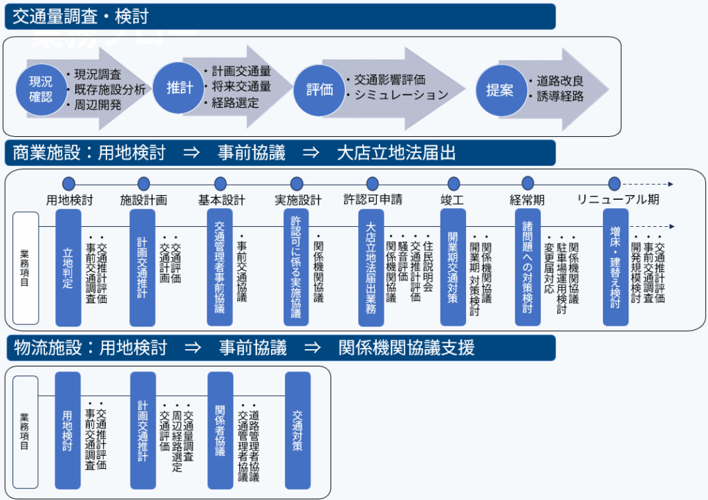 開発支援【施設開発における交通計画検討、関係機関協議・大規模小売店舗立地法コンサルティング】